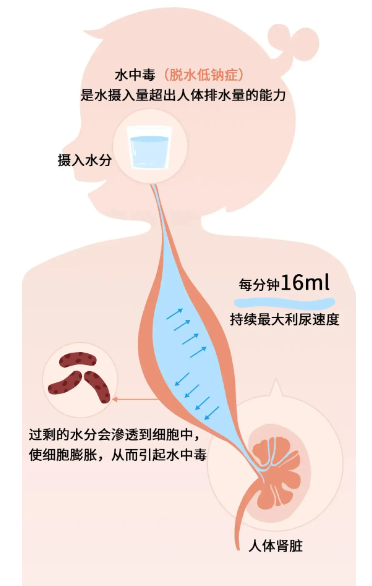 水中毒(water intoxication),又稱稀釋性低鈉血癥,指當(dāng)機(jī)體所攝入水總量大大超過了排出水量,以致水分在體內(nèi)潴留,引起血漿滲透壓下降和循環(huán)血量增多。臨床上較少發(fā)生。其癥狀取決于水過多的速度和程度,可分為急性水中毒和慢性水中毒兩類。程度較輕者,停止水分?jǐn)z入,排除體內(nèi)多余水分后,即可糾正,嚴(yán)重者可導(dǎo)致神經(jīng)系統(tǒng)永久性損傷或死亡。