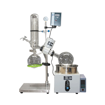 蒸發(fā)瓶恒速旋轉(zhuǎn),水浴鍋恒溫加熱,在此條件下:物料在蒸發(fā)瓶?jī)?nèi)壁形成大面積均勻薄膜快速蒸發(fā),在真空條件下可以提高蒸發(fā)效率(需連接真空裝置),溶媒蒸汽經(jīng)玻璃冷凝盤管時(shí)冷卻成液體(需連接冷卻裝置),回收于收集瓶。