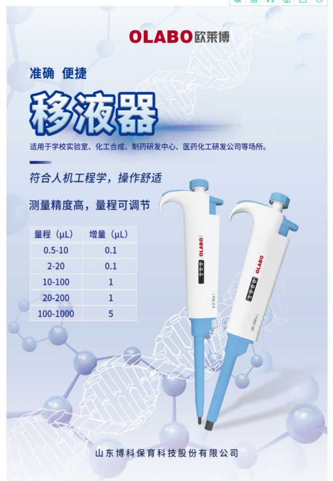 當前位置 > 首頁 > 產品中心  > 樣品處理 > 移液器> 國產OLABO,B系列單道可調式移液器100-1000μl